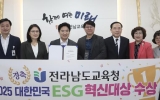 전국 박철홍 기자2025. 04.22[제일경제신문]전라남도교육청이 지난 18일 서울 대한상공회의소에서 열린 ‘2025 대한민국 ESG경제대상’ 시상식에서 공공기관 부문 ‘ESG 혁신 대상’을 수상했다. 이번 수상은 지난해 ‘제3회 대한민국 ESG 대상’에 이어 2년 연속 수상이라는 점에서 의미가 크며, 전국 시도교육청 가운데 유일한 수상 기관으로 주목을 받았다. 전남교육청은 ESG(환경 · 사회 · 거버넌스) 가치를 교육행정과 학교 교육과정 전반에 체계적으로 내재화해 온 노력을 높이 평가받았다. 전남교육청은 ‘ESG교육지원센터’ 설립, 2023년 전국 최초 ‘E...