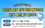 전국 박철홍 기자2025. 04.17[제일경제신문]완도군은 청산도 슬로걷기 축제 기간 중 청산도를 방문한 관광객을 대상으로 ‘완도 치유 페스타’ 현장 이벤트를 진행한다. 이벤트는 섬 관광 활성화와 특산품 홍보를 위해 마련됐다. 이벤트 참여 대상자는 청산도 여객선 승선권을 소지한 관광객(완도군 외 타 지역에 주소를 둔 자)이며, 4월 21일부터 26일까지 5일간 선착순 100명에게 특산품을 증정할 계획이다. 참여 방법은 ‘완도 치유 페스타’ 공식 SNS(인스타그램, 페이스북, 블로그)를 팔로우한 후, 청산도 여객선 승선권을 지참하여 완도 치유 페스타 현...