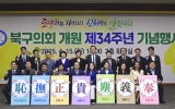 전국 박철홍 기자2025. 04.15[제일경제신문]광주 북구의회가 개원 34주년을 맞아 15일 3층 대회의실에서 기념행사를 개최했다고 밝혔다. 기념행사는 북구의원, 북구청장, 광주시의원, 사회단체장, 주민자치회장, 주민 등 150여 명이 참석했으며, 기념사, 축사, 주민 및 공무원 유공 표창, 청렴 퍼포먼스 순으로 진행됐다. 먼저 최무송 북구의장의 기념사를 시작으로, 강기정 광주광역시장, 정준호·전진숙 국회의원, 신수정 광주광역시의회 의장, 최수열 대구 북구의회 의장, 이홍식 의정동우회장이 개원 34주년을 축하했다. 이어, 유공자 표창에서는 의정 및 북구발전에 ...