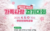 사회이슈 김정란 기자2025. 03.31[제일경제신문]예산군은 ‘제22회 가족사랑 걷기대회’를 오는 4월 5일 오전 10시 무한천 체육공원에서 개최한다. 이번 걷기대회는 ‘제12회 온가족 어울림 한마당’ 및 ‘식목일 나무 나눠주기 행사’와 병행해 어느 해보다 다양하고 풍성한 내용으로 군민을 맞이할 예정이다. ‘가족사랑 걷기대회’는 매년 윤봉길 마라톤대회 전날 벚꽃로에서 진행해 왔으나 도로 통제에 따른 청소년수련관, 도서관, 1100년 기념관(수영장) 등 이용객 불편을 해소하기 위해 지난해 가을부터 무한천 체육공원에서 개최하고 있다. 특히 무한천 체육공원의 둔치...