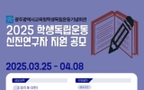 전국 박철홍 기자2025. 03.25[제일경제신문]광주광역시교육청학생독립운동기념회관이 학생독립운동의 역사적 가치를 조명하기 위한 연구 사업을 추진한다. 광주학생독립운동기념회관은 오는 25일부터 4월 8일까지 ‘학생독립운동 신진연구 지원 사업’ 참여자를 공모한다. 이번 사업은 지정주제, 자유주제 등 2개 부문으로 진행된다. 지정주제는 ‘광주학생독립운동 연구현황과 과제’ 및 ‘국내 학생 주체 독립운동 단체 연구’이며, 자유주제는 연구자가 학생독립운동 관련 주제를 자유롭게 선택할 수 있다. 지원 자격은 국내외 대학 인문·사회계열에서 석·박사학위를 취득한 자로, 학위 ...