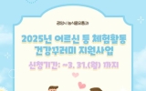 스포츠 김정란 기자2025. 03.13[제일경제신문] 광양시는 지난 6일 노인, 장애인, 아동 등이 이용하는 사회복지시설 및 경로당, 어린이집 등을 대상으로 '2025년 어르신 등 체험활동 건강꾸러미 지원사업'을 시작했다고 밝혔다. ‘체험활동 건강꾸러미’는 실외에서 하는 활동을 실내에서도 할 수 있게 도와주는 상품이다. 특히 여름철이나 겨울철 실외 활동이 어려운 소외계층에게 실내에서 다양한 체험을 할 기회를 제공한다. ▲다육식물심기체험 ▲곰돌이 다육아트 ▲ 나의 작은 정원 등 총 32개의 상품이 준비돼있다. 신청은 광양시 누리집(홈페이지)에서 신청 ...