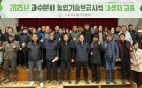 스포츠 김정란 기자2025. 03.12[제일경제신문]전라남도 나주시는 지속가능한 농촌발전과 농업 생산성 향상을 위해 시범 추진하는 ‘2025년도 농업기술보급사업’ 대상자 교육을 최근 마무리했다고 12일 밝혔다. 이번 교육은 15개 농업기술보급사업에 선정농가 및 단체 158명을 대상으로 이뤄졌다. 보조금 집행 절차 및 정산, 보조금통합관리시스템 사용 및 사후관리와 범사업별 세부 추진사항, 성과분석 등을 교육했다. 농업기술 보급은 새로운 농업기술을 농가에 시범 적용하는 사업이다. 기후변화, 스마트팜, 친환경, 노동력 절감 등 미래농업 현안에 대한 선제적인 대...