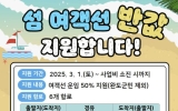 전국 박철홍 기자2025. 03.05[제일경제신문]완도군은 ‘2025 완도 방문의 해’를 맞아 3월 1일부터 관광객 유치와 지역 경제 활성화를 위해 섬 여객선 반값 운임 지원 사업을 추진한다. 지원 대상은 완도를 찾는 관광객으로 완도군에 주민등록을 두고 있지 않은 일반인이 해당된다. 이용 방법은 청산, 노화, 소안, 보길도 여객선 이용 시 선사가 신고한 운임에서 50%를 자동으로 할인받을 수 있다. 여객선 반값을 지원받을 수 있는 항로는 완도-청산, 완도-여서, 땅끝-산양, 땅끝-넙도, 화흥포-동천-소안 등 6개이다. 단, 월별 지원 예산에 한도가 있어 예산 ...
