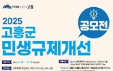 전국 박철홍 기자2025. 02.20[제일경제신문]고흥군은 2월 18일부터 4월 10일까지 군민의 일상생활과 기업 활동에 불편을 주는 불합리한 규제를 발굴·개선하기 위해 ‘2025년 민생규제 개선과제 공모전’을 개최한다고 밝혔다. 이번 공모전은 온라인 접수 창구(고흥군 대표 누리집→열린민원→신고센터→규제신문고→규제공모전)를 마련해 접근성을 높였으며, 지역의 핵심과제뿐만 아니라 민생을 저해하는 불합리한 규제를 집중적으로 발굴하고 개선하기 위해 기획됐다. 공모 분야는 ▲노인, 장애인, 저소득층 등 복지 저해 규제 ▲청년·경력단절자 취업 애로사항 ▲소상공인·중소기업 창...