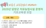 전국 박철홍 기자2025. 02.20[제일경제신문]담양군은 치유농업에 대한 이해와 체계적인 치유농업 서비스 제공을 위한 ‘치유농업시설 운영자 교육’을 오는 3월부터 6월까지 운영한다. 이번 교육은 치유농업에 관심이 있는 관내 농업인 30명을 대상으로 담빛농업관 세미나1실과 농업기술센터 본관에서 진행되며, 오는 3월 20일 개강식을 시작으로 6월 25일까지 총 14회 과정으로 진행된다. 교육은 ▲치유농업의 이해 ▲치유농업 자원의 이해 ▲치유농업시설 준비 ▲치유농업 프로그램 운영 ▲치유농업시설 운영 등으로 구성해 치유농업시설 운영자에게 필요한 소양과 전문 능력을 ...