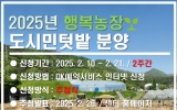 경제 김정란 기자2025. 02.09[제일경제신문]대전시농업기술센터는 오는 10일부터 이번 달 21일까지 대전시민을 대상으로 도시민 텃밭 행복 농장에 참여할 110세대를 모집한다. 행복 농장은 대전시농업기술센터(유성구 교촌대정로 97) 내부에 위치하며, 20㎡ 45구획, 10㎡ 65구획으로 구성되어 있다. 현재 주민등록상 만 19세 이상의 대전시민이면 누구나 ‘대전광역시 OK예약서비스’에서 1가구당 1구획을 신청할 수 있다. 시는 4월 12일 개장식을 열고 참가자에게 텃밭 교육을 시행하고, 작물 선정과 재배 관리 등은 11월 말까지 참가자가 자율적으로 운영할 ...