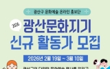 전국 박철홍 기자2026. 02.22[제일경제신문]광주 광산구가 광산구 문화예술 온라인 홍보단 ‘2026년 광산문화지기’ 참여자를 3월 10일까지 모집한다. ‘광산문화지기’는 광산구의 다양한 문화예술 공연과 행사 현장을 직접 취재하고, 누리소통망(SNS)에 생생한 후기를 작성, 공유하는 온라인 홍보단이다. 광산문화지기는 4월부터 12월까지 약 9개월간 활동한다. 모집 인원은 10명 내외로, 문화예술에 관심이 많고 누리소통망(SNS) 활용이 능숙한 시민이라면 누구나 참여할 수 있다. 참여 방법은 광산구 누리집 새소식에서 신청 서류를 내려받아 3월 10일까지 전자우...