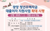 전국 박철홍 기자2025. 01.02[제일경제신문]광양시는 민선 8기 청년주거지원 대표 공약인 ‘광양청년 주택자금 대출이자 지원사업’을 2025년부터 확대 시행한다고 2일 밝혔다. 광양시가 2018년 전국 최초로 추진한 ‘광양청년 주택자금 대출이자 지원사업’은 관내 거주 또는 거주 예정인 무주택 청년에게 주택 구입 또는 전세(임대)에 따른 대출이자를 지원하는 사업이다. 주택 구입의 경우 대출금 1억 원 이내, 전세(임대)의 경우 6천 6백만 원 이내에서 연 최대 3%의 대출이자를 매월 이차보전 방식으로 지원해주고 있다. 지금까지의 지원 총액(54억 원), 지원...