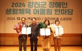 전국 박철홍 기자2024. 12.27[제일경제신문]강진군이 26일 강진아트홀 소공연장에서 2024년 장애인 생활체육 어울림 한마당을 개최했다. 이번 행사는 한 해 동안 장애인 생활체육 활동의 성과를 공유하고, 참여자 간의 화합을 도모하기 위해 마련됐다. 이날 행사는 강진원 강진군수, 서순선 강진군의회 의장을 비롯해 장애인체육회 임원, 장애유형단체 및 장애인 체육인 등 200여 명이 참석해 성황을 이뤘다. 올해 강진군은 전년보다 더 많은 예산을 투입해 장애인 체육 발전에 힘썼다. 이에 따라 제32회 전라남도장애인체육대회에서 군 단위 4위, 종합 9위를 차지했...