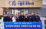 전국 박철홍 기자2024. 12.20[제일경제신문]광주광역시체육회는 20일 광주 남구 소재 아동복지시설인 노틀담 형제의 집을 방문해 따뜻한 나눔을 실천했다. 시 체육회는 올 해 계속된 물가상승, 경기침체로 힘든 시기를 겪고 있는 복지시설에 작은 도움을 주기 위해 방문했다. 겨울 한파로 어려움을 겪는 이웃을 위해 조금이나마 따뜻하게 연말연시를 보내길 바라는 마음으로 손길을 내밀고 10년째 아동복지시설과 나눔을 이어갔다. 전갑수 체육회장을 비롯한 체육회 임직원 10여명은 위문품을 전달하고 시설 관계자 및 이용자들과 소통하는 시간을 가졌다. 전갑수 시 체육...