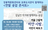 경제 김정란 기자2024. 12.10[제일경제신문]강릉시립도서관 책문화센터는 오는 14일 오전 10시부터 모루도서관 3층 하슬라강당에서 어린이들과 함께하는 ‘연말 공감 콘서트’를 진행한다. 연말 공감 콘서트는 1부 북토크와 2부 어린이 마술쇼로 진행된다. 공감 콘서트 1부의 초청 작가는 그림책 '하얀 사람'의 저자 김남진 작가이다. '하얀 사람'은 작가가 눈 내리던 겨울에 강원도를 여행하던 중, 강릉에서 체험한 눈과 용평스키장에서 만들었던 눈사람을 보고 떠올린 이미지를 토대로 만들어진 이야기이다. 이어지는 2부에서는 크리스마스 스토리텔링 매직쇼 '마술사...
