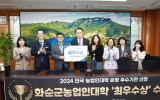 정치 김정란 기자2024. 11.26[제일경제신문]화순군은 26일 화순군농업기술센터가 농촌진흥청이 주관하는 ‘2024년 농업인대학 운영 우수기관 발표 경진대회’에서 최우수 기관에 선정됐다고 밝혔다. 이 대회는 농업인 교육의 질적 향상과 지속적인 교육 성과 증진을 위해 매년 개최되며, 전국 150개 시·군에서 농업인대학 운영 전반에 대한 자체평가(1차)와 역량평가(2차)를 걸쳐 10개 시군을 선정한 후, 최종 발표 심사에 들어갔다. 주요 평가 내용은 ▲요구 분석 및 인프라 구축 ▲과정 개설 및 운영 ▲평가 및 사후관리 등이다. 특히, 화순군농업기술센터는 △청년농과...