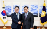 전국 박철홍 기자2024. 11.20[제일경제신문]김영록 전라남도지사는 20일 국회를 방문해 우원식 국회의장, 진성준 민주당 정책위의장, 안도걸·서미화 국회의원 등을 찾아가 통합의대 설립 등 지역현안 해결과 2025년 예산의 국회 증액 대상 핵심 사업을 건의했다. 전라남도 국립의과대학 설립과 관련해 지난 15일 목포대와 순천대가 지역 상생·화합과 미래 발전을 위해 통합에 합의한 것을 설명하고, 전남도가 오는 22일 정부에 ‘통합의대’를 추천하면, 정부에서 2026년도 국립의대 신설 및 정원 배정 절차를 신속히 추진하도록 적극 지원해줄 것을 간청했다. 또한 국토 남...