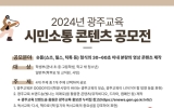 전국 박철홍 기자2024. 11.07[제일경제신문]광주시교육청은 오는 8~26일 교육가족과 시민이 함께하는 ‘2024 광주교육 시민소통 콘텐츠 공모전’을 실시한다. 이번 공모전은 일반부와 학생부 등 2개로 나눠 진행되며, 학생부의 경우 광주에 거주 중인 학교 밖 청소년도 참가할 수 있다. 제출 작품은 해당도 1천080×1천920픽셀/30fps 이상의 순수 창작 동영상이어야 하며, 개인 또는 팀으로 참가할 수 있다. 주제는 ▲광주교육은 OOOO이다!(자유롭게 광주교육의 의미를 표현) ▲광주교육 브랜드송을 활용한 콘텐츠 제작(브랜드송을 활용한 창의적인 표현) ▲독...
