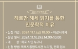 전국 박철홍 기자2024. 10.31[제일경제신문]목포시립도서관은 인문학 강연 '헤르만 헤세 읽기를 통한 인문학적 치유'를 오는 16일 오후 2시에 진행한다. 이번 강연에서는 문학 치유에 대한 짧은 이론과 헤르만 헤세 작품을 함께 읽고 나누며 인문학적 치유와 마음의 변화에 대해 이야기 할 예정이다. 인문학 강연 강연자인 안미현 교수는 독일 튀빙겐대학교 문학박사, 영국 캠브리지대학교 방문교수를 역임하고, 목포대학교 독일언어문화학과 명예교수로 다수의 독일문학작품을 번역하고 연구논문을 발표했다. 강연 참가 신청은 오는 11월 1일 10시부터 목포시통합도서관 누리집에...