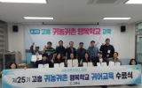 전국 박철홍 기자2024. 10.28[제일경제신문]고흥군은 지난 25일 고흥 귀농귀촌 행복학교(고흥군 남양면 소재)에서 ‘제25기 고흥 귀농귀촌 행복학교 귀어교육 수료식’을 개최했다고 밝혔다. 귀어 귀촌에 대한 올바른 이해와 초기 안정적인 정착을 돕기 위해 지난 21일부터 25일까지 진행됐으며, 고흥에서 귀어 귀촌을 꿈꾸고 제2의 고향으로 정착하려는 관내·외 교육생을 대상으로 진행됐다. 이번 교육은 전문 강사를 초빙하여 전남 해양수산 발전 전략, 재무관리, 법률 상식, 어촌 융복합 산업화(6차 산업화) 교육 등 이론뿐만 아니라, 낭장망과 도다리 양식장 등 실제 어...