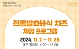 전국 박철홍 기자2024. 10.27[제일경제신문]광주광역시는 남구 임암동 광주김치타운에서 ‘2024 전통발효음식 체험프로그램 시즌3-치즈 체험’을 운영한다. 이번 프로그램은 치즈를 활용한 요리 체험을 통해 시민들이 발효음식을 체험할 수 있도록 한다. 11월 한 달 간 매주 목요일마다 운영된다. 한 회당 최대 20명까지 신청할 수 있으며, 회당 수강료는 1만원이다. 일정은 ▲11월 7일 또띠아 모짜렐라 피자와 레몬바질 리코타소스 ▲11월 14일 누룽지 리조또와 브리치즈 핑거푸드 ▲11월 21일 크림치즈 마늘빵과 그릭요거트 샐러드 ▲11월 28일 피타브레드 샌드위...