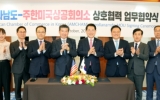 전국 박철홍 기자2024. 10.11[제일경제신문]전라남도는 11일 서울 코리아나호텔에서 주한미국상공회의소(AMCHAM)와 업무협약을 하고 경제협력 강화와 투자유치 활성화를 위해 협력하기로 했다. 업무협약식에는 김영록 전남도지사, 제임스 김 주한미국상공회의소 회장 겸 대표이사, 최승호 퍼시피코 에너지코리아 대표이사, 하운식 GE 버노바 코리아 사장, 이승준 퍼시피코 에너지 코리아 부사장 등이 참석했다. 주요 협약 내용은 ▲기업 및 투자유치 활동 지원 ▲한국시장에 진출을 희망하는 미국 기업과 전남에 위치한 한국 기업의 협력 증진 ▲전남도와 미국 간 기업의 수출 활동...