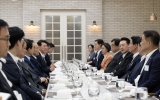 [제일경제신문]10월 2일 윤석열 대통령은 대통령실 파인그라스에서 국민의힘 원내지도부, 상임위원장 및 간사단을 격려하기 위해 만찬을 가졌다.