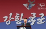 전국 박철홍 기자2024. 10.01[제일경제신문]윤석열 대통령은 국군의 날인 10월 1일 서울공항에서 건군 76주년 국군의 날 기념식을 주재했다. 올해 국군의 날 기념식에는 5,300여 명의 병력과 340여 대의 장비가 참가했다. 서울공항 활주로에서 개최된 기념식은 국민의례에 이어, 전략사령부 부대기 수여, 열병, 훈장·표창 수여, 기념사 순으로 진행됐고, 이후‘국토수호 결의’와 함께 마지막으로 기념식에 참가한 전 장병과 장비의 분열이 뒤따랐다. 대통령은 오늘부로 창설되는 전략사령부의 부대기를 진영승 전략사령관에게 수여하며, 전략사가 북한의 핵과 대량살상무기로부...