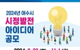 전국 박철홍 기자2024. 09.25[제일경제신문]여수시는 시민들의 창의적인 제안을 시정에 반영하고, 시정에 대한 활발한 참여를 이끌어내기 위해 ‘시정발전 아이디어’를 공모한다. 공모 주제는 ‘시민이 행복한 살기 좋은 여수 만들기’로 ▲인구·청년 ▲지역경제 ▲환경·안전 ▲문화·관광 ▲보건·복지 등 전 분야에 대한 참신한 제안을 접수한다. 여수시 발전에 관심 있는 시민이라면 누구나 참여할 수 있다. 참여희망자는 오는 11월 1일까지 여수시 누리집 고시·공고를 참고해 전자우편 또는 팩스, 방문, 우편 등으로 제안서를 비롯한 구비서류를 제출하면 된다. 접수된 제안은...