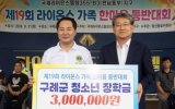 전국 박철홍 기자2024. 09.23[제일경제신문]전남 구례군은 국제라이온스협회 355-B3(전남동부)지구가 지난 21일 화엄사 일원에서 열린 제19회 라이온스 가족 한마음 등반대회에서 구례군 청소년들을 위한 장학금 300만 원을 기탁했다고 밝혔다. 국제라이온스협회 355-B3(전남동부)지구는 69개 클럽 3,000여 명의 회원이 활동하고 있으며, 해마다 집수리 사업, 이동 목욕, 헌혈, 김장 봉사 등 다양한 봉사활동을 이어가고 있다. 이날 열린 한마음 등반대회에는 배혁주 총재를 비롯한 지역위원장, 회원 및 가족들이 참석해 화합과 우정을 다지는 뜻깊은 시간을 보냈...