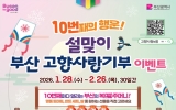 사회이슈 김정란 기자2026. 01.28[제일경제신문]부산시는 2026년 설 명절을 맞아 고향사랑기부 참여를 독려하고 기부자들에게 풍성한 행운을 전하기 위해 '10번째의 행운! 설맞이 부산 고향사랑기부 이벤트'를 추진한다고 밝혔다. 이번 이벤트는 오늘(28일)부터 오는 2월 26일까지 30일간 진행되며, 해당 기간 ‘부산광역시(시청)’에 1회 10만 원 이상 기부하면 별도의 신청 없이 자동으로 참여된다. 올해부터는 법령 개정으로 세액공제가 확대돼, 기부액보다 더 큰 혜택을 돌려받을 수 있는 실속 있는 기부가 가능해졌다. 10만 원 기부 시 ▲10만 원 전액...