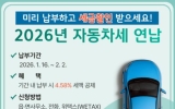 [제일경제신문]장흥군은 15일 2026년도 자동차세 연납 고지서를 장흥군에 등록된 모든 차량 소유자에게 일괄 발송했다고 밝혔다. 자동차세 연납 제도는 매년 6월과 12월 두 차례로 나눠 부과되는 정기분 자동차세를 1월에 미리 납부하면 공제 혜택을 주는 제도다. 올해도 1월 중 납부 시 4.5%의 세액 공제가 적용되며, 최근 어려운 경제 상황 속에서 가계 부담 완화에 도움이 될 것으로 군은 기대하고 있다. 납부 기한은 2026년 1월 16일부터 2월 2일까지이며, 납부 기간 내에 연납 고지서를 기반으로 납부를 완료하면 별도 신청...