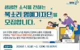 전국 박철홍 기자2026. 01.14[제일경제신문]광주광역시 북구는 구정 소식지인 ‘북소리’를 통해 지역의 생생한 소식을 전달하는 명예기자단을 모집한다고 14일 밝혔다. ‘북소리 명예기자단’은 구정 홍보에 주민들의 참여를 활성화하기 위해 지난 2009년 발족한 이후 현재까지 운영되고 있다. 이번 모집에서는 제9기 명예기자단 40여 명을 선발할 계획이다. 지역사회에 관심이 많고 기사 작성 및 인터넷 활용 능력을 갖춘 북구 주민이라면 누구나 신청할 수 있다. 모집 기간은 다음 달 12일까지이며 신청 방법은 지원서와 자유 주제 기사 1개를 작성해 이메일로 제출하면...