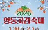 경제 김정란 기자2025. 12.29[제일경제신문]충청북도 영동군의 대표 겨울 축제인 2026 영동곶감축제가 오는 2026년 1월 30일부터 2월 1일까지 3일간 영동천 하상주차장 일원에서 열린다. 이번 축제는 영동군과 (재)영동군 문화관광재단, 영동곶감연합회가 공동으로 주최·주관하며, 지역 대표 겨울 특산물인 곶감의 우수성을 널리 알리고 침체된 지역 경제에 활력을 불어넣기 위해 개최된다. 특히, 최근 어려운 경제 여건 속에서 지역 농가와 상권에 실질적인 도움이 될 수 있도록 곶감과 지역 특산물 소비 촉진에 중점을 두고, 인근 전통시장과의 연계를 통해 상생형 축제...