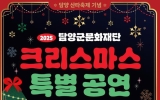 전국 박철홍 기자2025. 12.16[제일경제신문] 담양군문화재단은 연말연시를 맞아 ‘제7회 담양산타축제’와 연계한 ‘2025 크리스마스 특별 공연’을 12월 24일부터 25일까지 이틀간 담양읍 중앙공원 일원에서 개최한다. 이번 공연은 군민과 관광객에게 문화 향유 기회를 제공하고, 거리 공연을 통해 원도심 유동 인구를 늘려 지역 상권 활성화로 이어가기 위해 마련됐다. 공연은 매일 오후 2시부터 5시까지 진행된다. 행사 첫날인 24일에는 정용주, 공성길, 주현 등 포크 가수들이 무대에 오르며, 전남도립대 버스킹팀과 여신콜라보예술단이 함께 참여해 크리스...