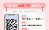 전국 박철홍 기자2025. 12.08[제일경제신문]보성군은 2026년도 농업인 교육과정 운영에 앞서 현장의 요구를 반영한 맞춤형 교육 과정 편성을 위해 오는 12월 31일까지 ‘2026년 농업인 교육 수요 조사’를 실시한다고 밝혔다. 이번 수요 조사는 농업인의 영농 경력, 관심 분야, 교육 방식에 대한 요구를 종합적으로 파악해 내년도 교육과정 편성의 기초 자료로 활용된다. 조사 분야는 ▲보성생명농업대학, ▲농업기술 전문교육, ▲정보화 교육, ▲농산물 가공 교육 등 4개 분야로 구성됐다. 참여 방식은 온라인과 오프라인을 병행하여 진행된다. 온라인 참...