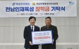 전국 박철홍 기자2025. 12.02[제일경제신문]전라남도는 고광일 목포한국병원 원장은 2일 전남인재평생교육진흥원에 전남인재육성 장학금 1천만 원을 기탁했다고 밝혔다. 전남인재평생교육진흥원 회의실에서 열린 기탁식에는 고광일 원장, 범희승 전남인재평생교육진흥원장 등이 참석했다. 1988년 개설된 목포한국병원은 20개 진료과와 600병상을 갖춘 전남 서부권역 대표 종합병원이다. 2025년 보건복지부 ‘포괄 2차 종합병원 지원사업’에 선정되며 지역 필수의료를 책임지는 핵심 의료기관으로 자리매김했다. 특히 지난 2021년부터 지역 인재 육성을 위해 2천만 원의 장학...