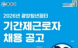 전국 박철홍 기자2025. 12.01[제일경제신문]광양시는 2026년 한 해 동안 광양청년꿈터 운영을 함께할 기간제근로자 4명을 모집한다고 1일 밝혔다. 채용인원은 ▲센터장 1명 ▲매니저 3명 등 총 4명이다. 센터장은 운영 총괄과 사업계획 수립, 프로그램 기획 등을 담당하며, 매니저는 시설 관리, 데이터·통계 업무, 온라인 채널 운영, 청년정책 및 청년꿈터 홍보 등 실무 전반을 맡는다. 응시를 위한 공통 요건은 △공고일 기준 18세 이상(단, 남성은 계약기간 중 군 복무 예정이 없는 자) △공고일 이전부터 광양시에 주민등록을 두고 관내에 거주하고 있는 자다. ...
