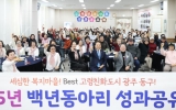 전국 박철홍 기자2025. 12.01[제일경제신문]광주 동구는 지난달 28일 ‘2025년 백년동아리 성과공유회’를 열고 올 한 해 어르신 여가 활동 성과를 공유했다고 밝혔다. 동구는 지난 2021년부터 백년동아리 사업을 운영하며 어르신들이 취미활동을 통해 일상에 활력을 찾고 사회적 관계를 확대할 수 있도록 다양한 여가 프로그램을 지원해왔다. 올해 백년동아리에는 13개 분야에 400명의 어르신이 참여했다. 동구는 동아리 분야 구성과 운영 방식을 조정해 프로그램의 밀도와 참여 만족도를 높이는 데 중점을 뒀다. 성과공유회에서는 미술·캘리그래피·뜨개 작품과 활동 사...
