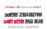 전국 박철홍 기자2025. 11.28[제일경제신문]광주 동구는 고향사랑기부제 활성화를 위해 민간 플랫폼 위기브·롯데멤버스·롯데리아와 협력해 특별 기부 이벤트를 진행한다고 밝혔다. 이번 이벤트는 기부자가 보다 쉽고 매력적인 혜택 속에서 고향사랑기부에 참여할 수 있도록 마련된 것으로, 특히 롯데멤버스(엘포인트)·롯데리아와 제휴를 통해 실질적인 혜택을 제공함으로써 지역경제와 기부 문화 확산에 기여하고자 마련됐다. 이번 행사는 이달 27일부터 오는 12월 31일까지 진행된다. 엘포인트 앱을 통해 ‘광주동구&위기브 이벤트’ 누리집에 접속해 광주 동구에 10만 원 이상 기부...