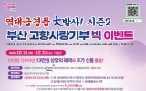 경제 김정란 기자2025. 11.17[제일경제신문]부산시는 지난 10월 16일부터 진행 중인 '역대급 경품 대발사 시즌2! 부산 고향사랑기부제 연말 빅 이벤트'에 많은 동참을 당부했다. 이번 이벤트는 '제106회 전국체육대회'와 연계하여 시작됐으며, 현재까지 5천여 명의 소중한 참여가 이어지고 있다. 시는 연말까지 총 5만 명 달성을 목표로 남은 기간 4만 5천 명의 따뜻한 마음을 기다리고 있다. 특히, 시는 연말을 맞아 기부자들에게 감사의 마음을 전하고 선택의 폭을 넓히기 위해 특별한 답례품을 추가로 준비했다. 기존 답례품 외에 새롭게 선보이는 답...