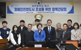 전국 박철홍 기자2025. 11.13[제일경제신문]광주 북구의회 정달성 의원(용봉·매곡·삼각·일곡동/더불어민주당)이 13일 이숙희 의원과 함께 ‘장애인친화도시 조성을 위한 정책간담회’를 개최했다. 이번 간담회는 북구 장애인친화도시 조성의 현주소를 점검하고, 현장의 다양한 의견을 바탕으로 민·관·정 차원의 공감대 형성과 실질적인 정책 방향을 모색하기 위해 마련됐다. 이날 간담회에는 정달성·이숙희 의원을 비롯해 오방장애인자립생활센터장, 예그리나장애인센터장, 장애인문화관광센터 사무국장, (사)한국신장장애협회 광주협회 사무처장, 전남대 동아리 ‘내일프로젝트’ 대외협력부장...
