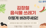 전국 박철홍 기자2025. 11.13[제일경제신문]광주광역시는 본격적인 김장철을 맞아 오는 11월17일부터 12월19일까지 ‘김장철 음식물쓰레기 집중 관리 기간’으로 운영, 김장용 채소류에 한해 스티커 부착 종량제봉투 배출을 한시적으로 허용한다. 광주시는 집중관리 기간 공공음식물자원화시설 처리용량을 평상시보다 20% 증량해 하루 최대 540t까지 처리하고, 반입시간을 2시간 연장해 음식물쓰레기 처리를 원활히 할 계획이다. 특히 배추겉잎 등 부피가 큰 김장용 채소류에 한해 스티커를 부착한 30ℓ이하 종량제 봉투 배출을 한시적으로 허용한다. 스티커는 행정복지센터, ...